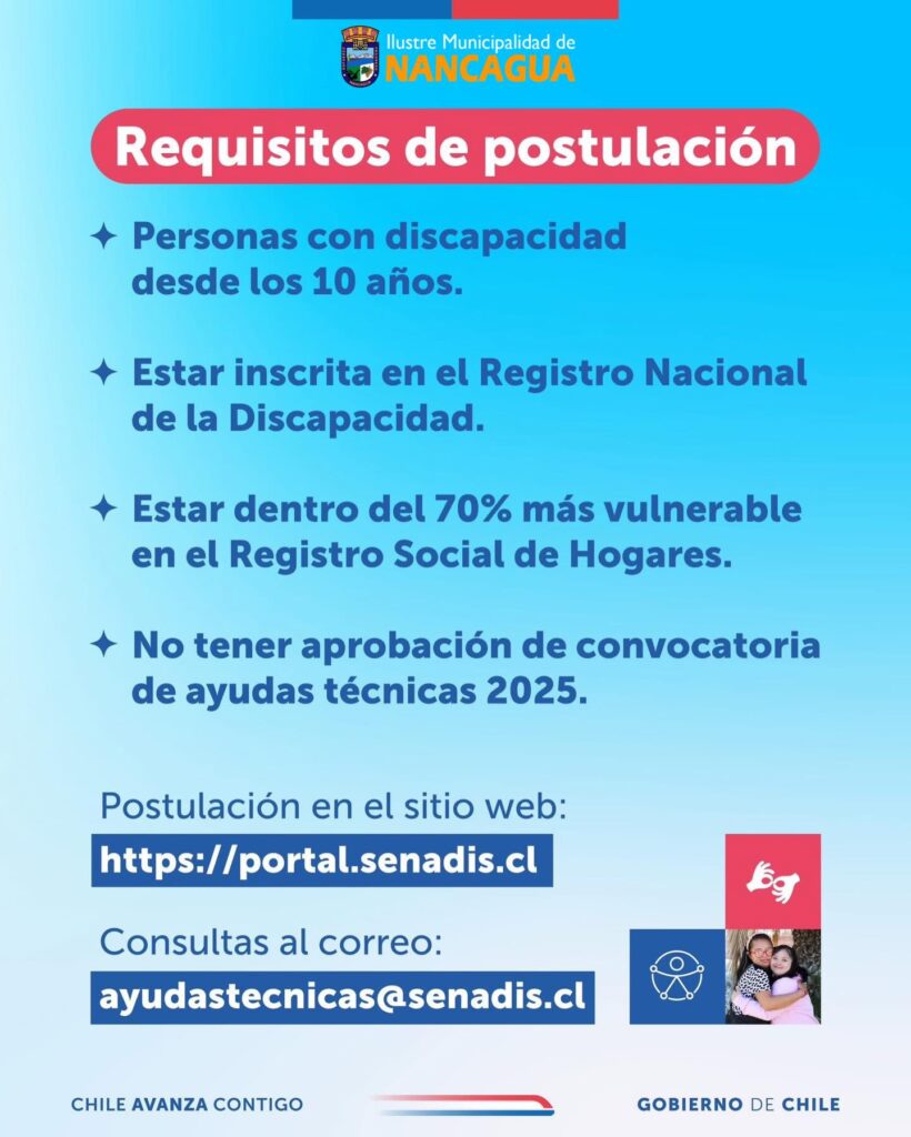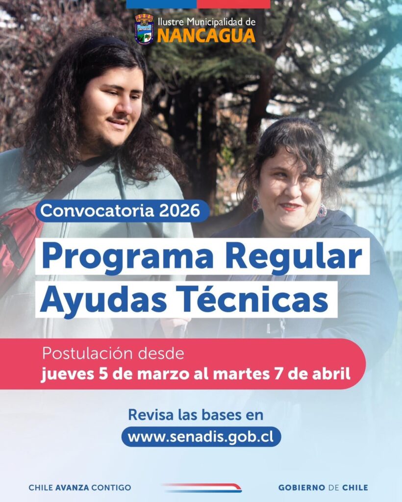 El Servicio Nacional de Discapacidad (SENADIS) abre la convocatoria a la Postulaciรณn al Programa Regular de Ayudas Tรฉcnicas 2026, con sus requisitos.