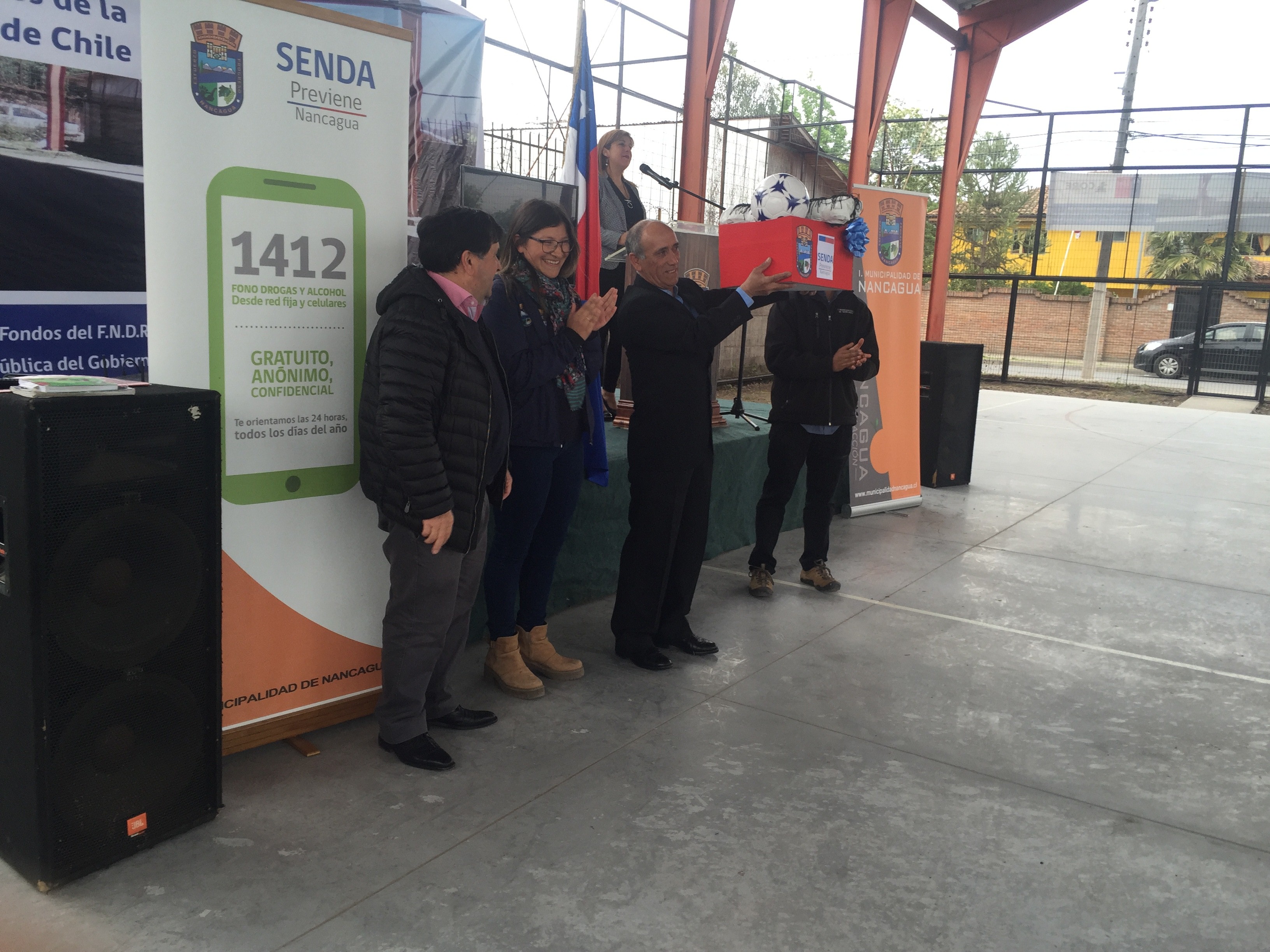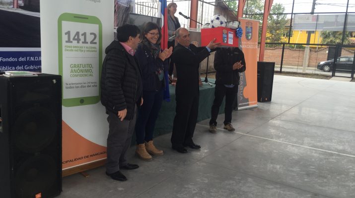 El día martes 17 de octubre se llevo a cabo en la Población Cóndores de Chile el cierre del proyecto “Recuperando y Utilizando los espacios comunitarios de la Población Cóndores de Chile”, financiamiento que fue en directo beneficios de los vecinos del sector quienes podrán disfrutar de una multi-cancha reparada y equipada para la realización de disciplinas deportivas como basquetball, boleyball y fútbol. SENDA Previene hace entrega de equipamiento deportivo al presidente de la junta de vecinos.