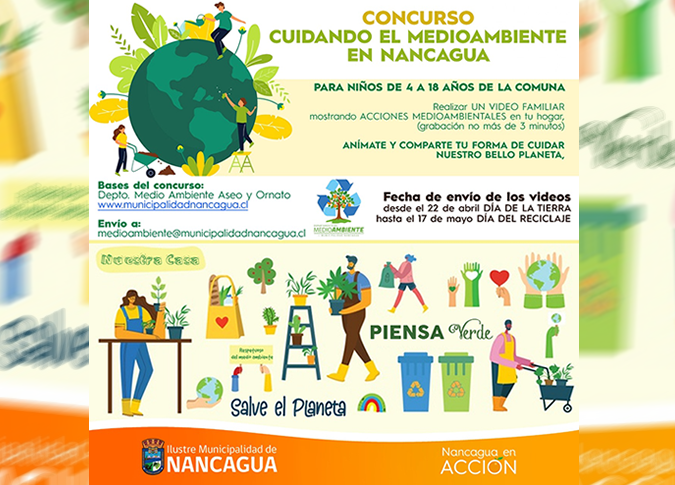 La Municipalidad de Nancagua a través de su Departamento de Medio Ambiente, en el Día Mundial de la Tierra, les invita a participar de un entretenido concurso “Cuidando el Medio Ambiente en Nancagua”.