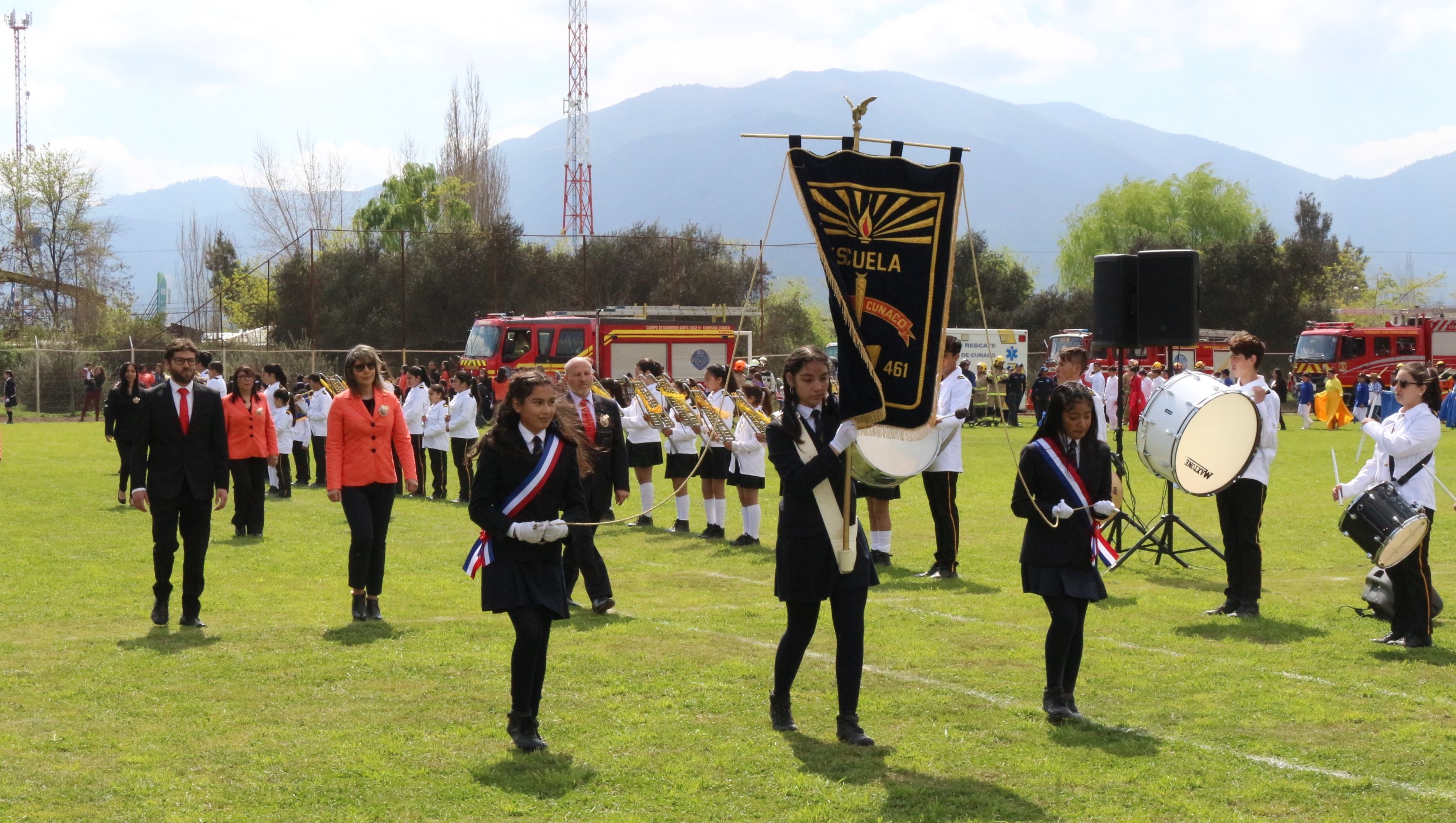 En este desfile participaron también las más altas autoridades de la comuna encabezadas por nuestro alcalde Eduardo Escanilla Gaete, los señores y señoras concejales Marcelo Horta, Gabriel Ahumada, Laura Caerols, Marina Rencoret, Emilio Bustos y Consuelo Contreras; además de jefes de departamentos municipales, funcionarios y comunidad de Cunaco.