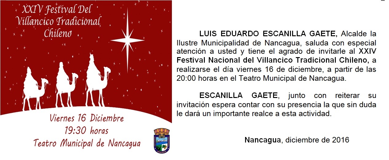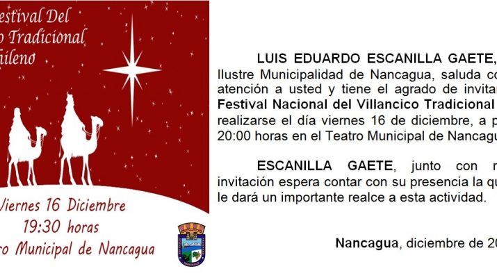 La invitación se extiende a todos los vecinos y vecinas de Nancagua para que disfruten de este hermoso evento gratuito que tendrá este año como escenario el Teatro Municipal, viernes 16 de diciembre desde las 19:30 horas.